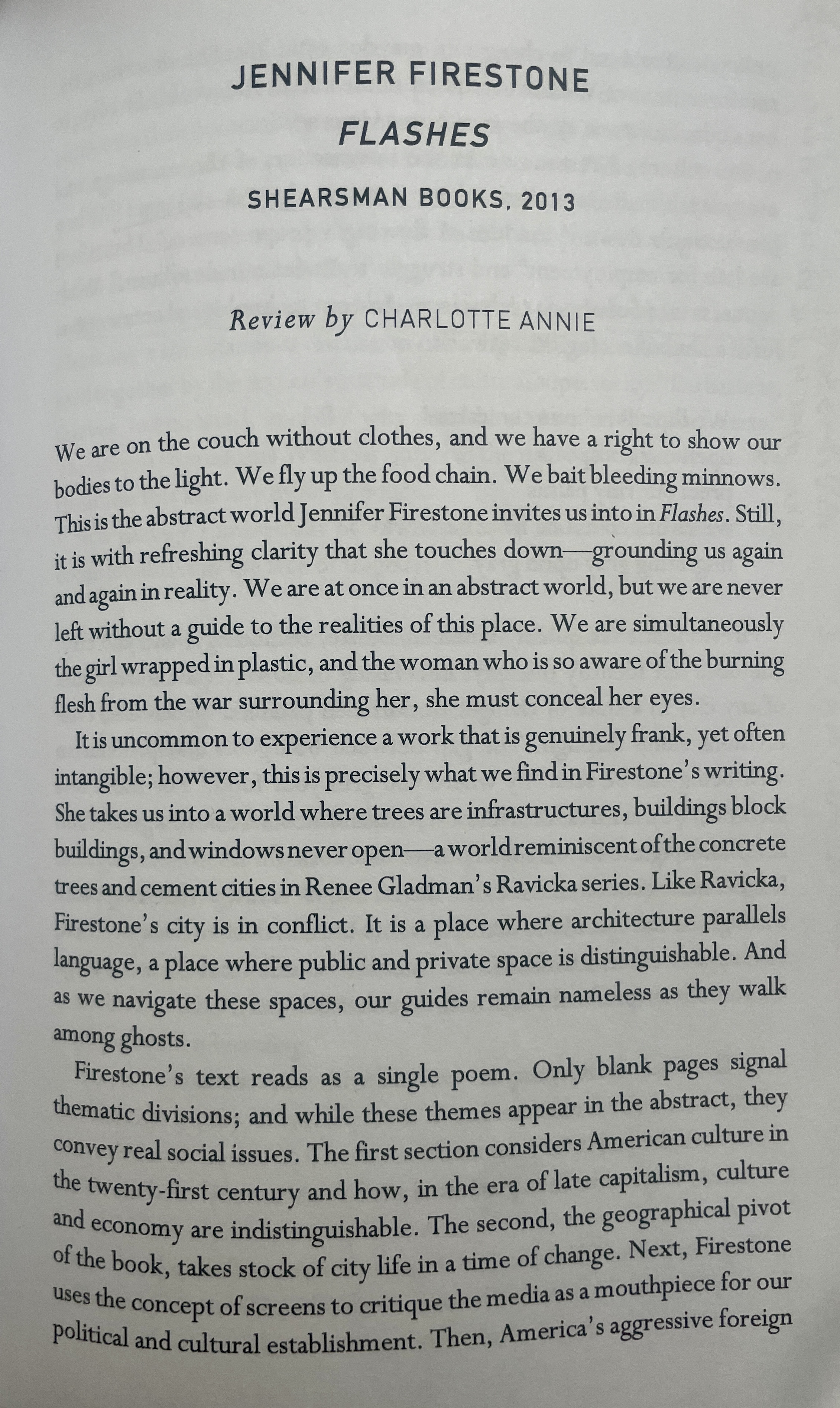 Review of Flashes (Shearsman, 2013). Bombay Gin 39, no.2 (2013):163-166